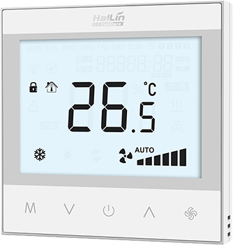 Термостаты HaiLin серии Breath с сенсорным экраном имеют элегантный дизайн с полностью черной поверхностью и интуитивно понятным сенсорным интерфейсом. С помощью термостата можно управлять включением/выключением вентиляторов, клапанов, заслонок или электронагревателей в фанкойлах, кондиционерах и системах отопления.Программируемые термостаты данной серии используют коммуникационный интерфейс RS-485 и протокол MODBUS для системной интеграции. Термостат может управляться вручную, главным контроллером или системой BAS.