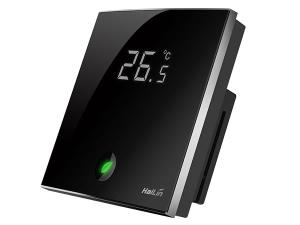 Термостаты HaiLin серии Breath с сенсорным экраном имеют элегантный дизайн с полностью черной поверхностью и интуитивно понятным сенсорным интерфейсом. С помощью термостата можно управлять включением/выключением вентиляторов, клапанов, заслонок или электронагревателей в фанкойлах, кондиционерах и системах отопления.